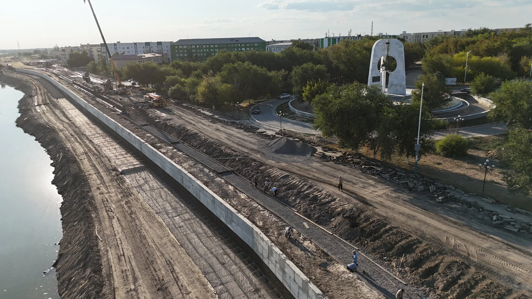 Мұнан бөлек, аймақ басшысы Тәуелсіздікке 25 жыл даңғылының жалғасы болып табылатын жол құрылысын көрді. Сырдария өзенінің қорғаныс бөгетін нығайту және Әбілқайыр хан көшесінен Саламатов көшесіне дейінгі 2,9 шақырым жол құрылысының барысын тексерді. Жобаның құны 5,3 млрд теңге. Мұнда 4 жолақты автожолмен қатар, ені 6 метр жаяу жүргіншілер және велосипед жолдары салынады. Құрылыс жұмыстарын «УАД» ЖШС атқаруда.